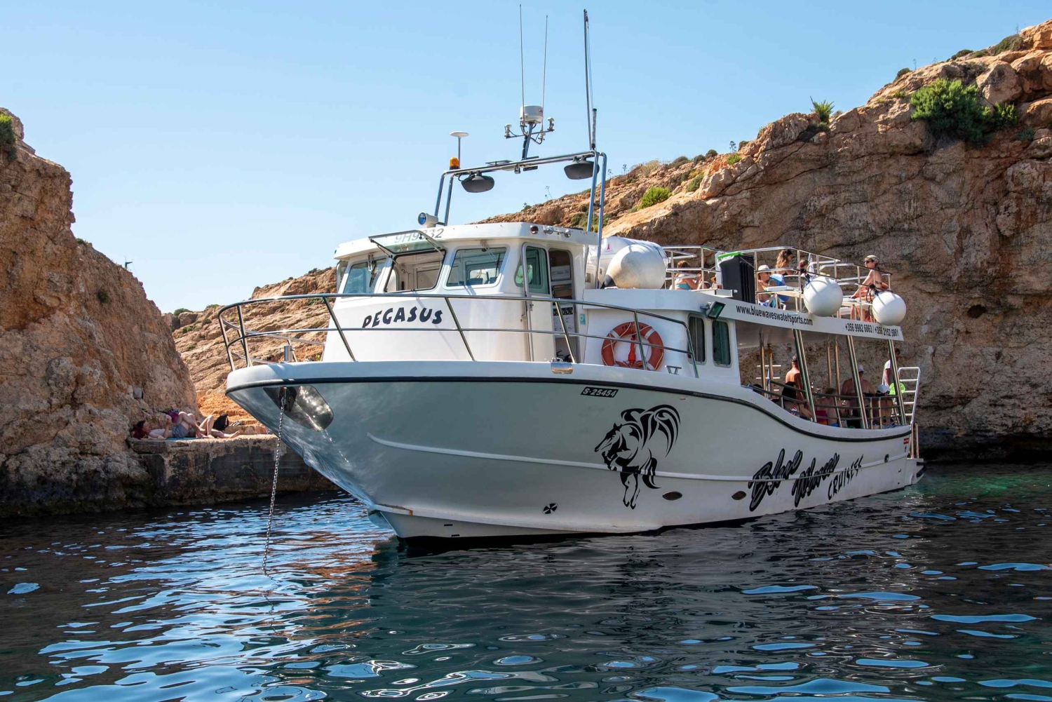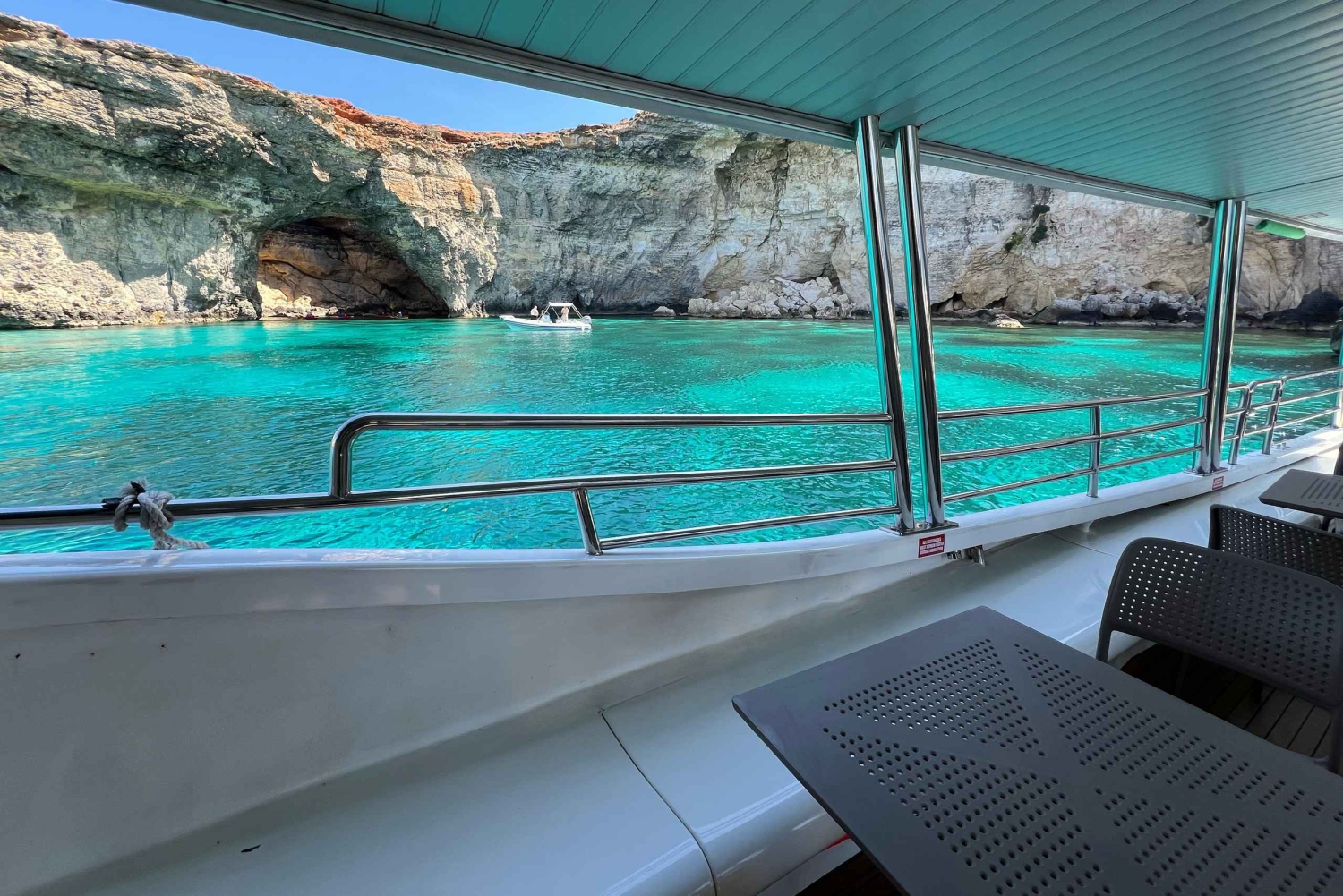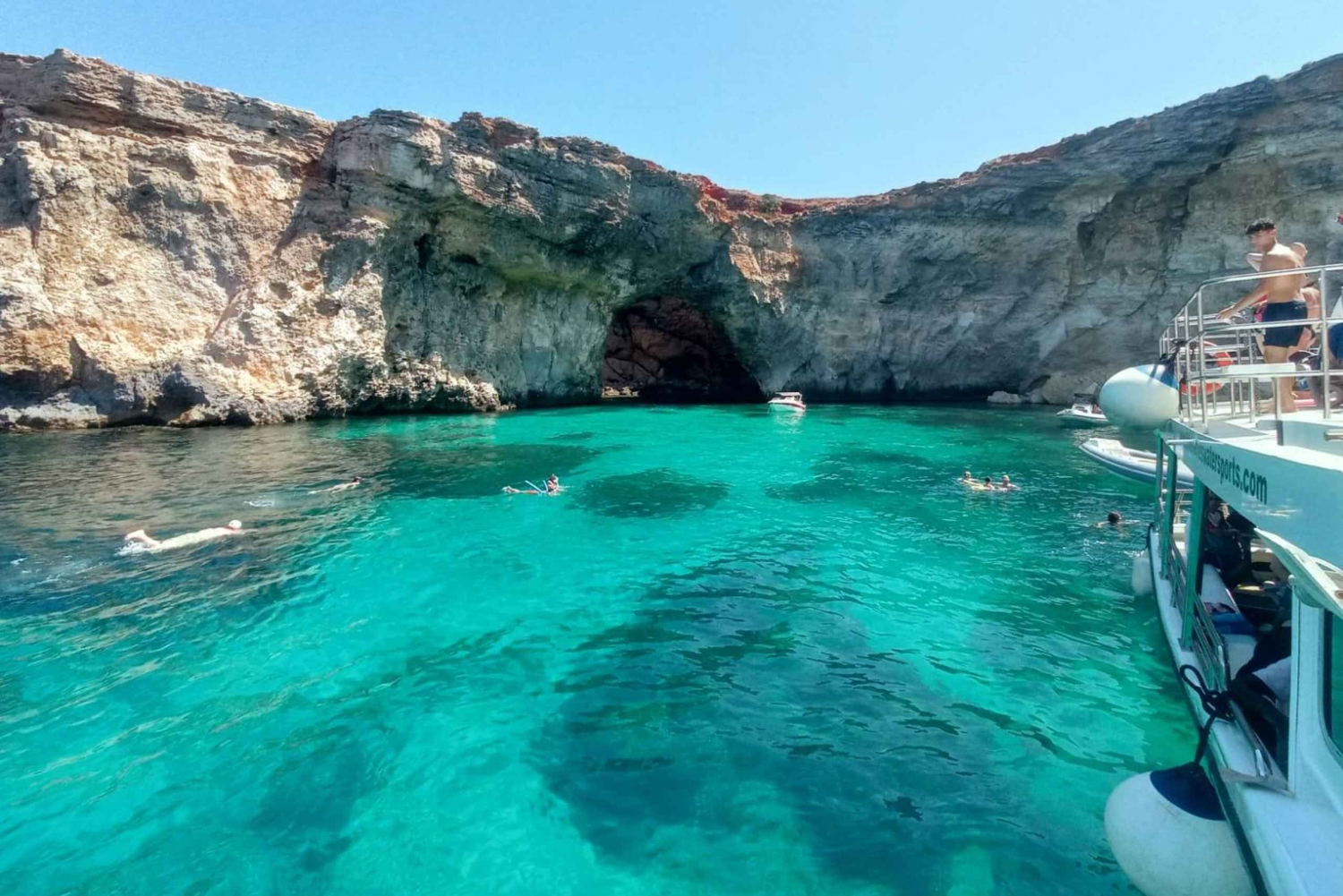 تشمل الرحلة البحرية 3 محطات توقف للسباحة والغطس في كريستال لاغون وبلو لاغون وجبلة تا حلفا (جنوب جوزو)