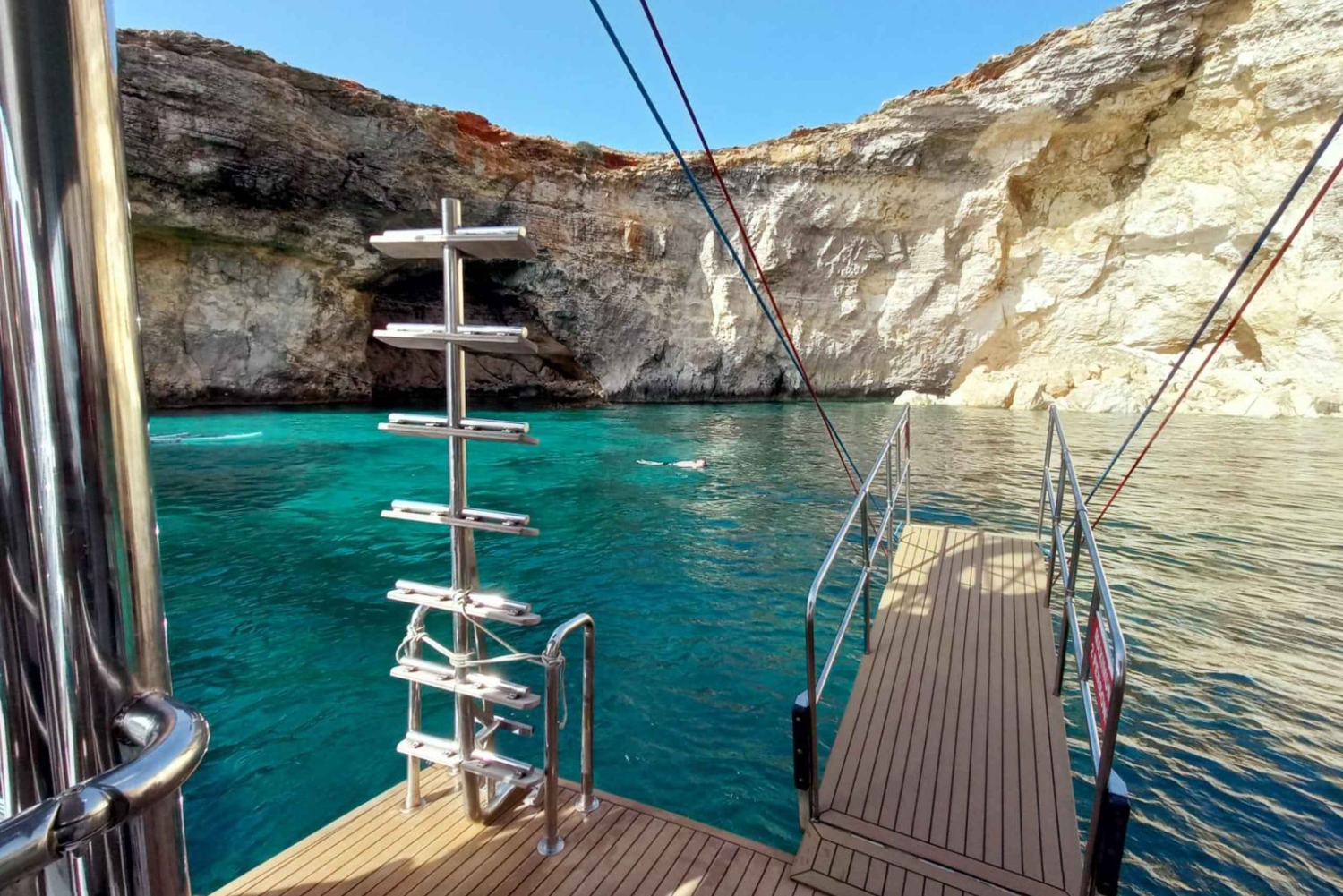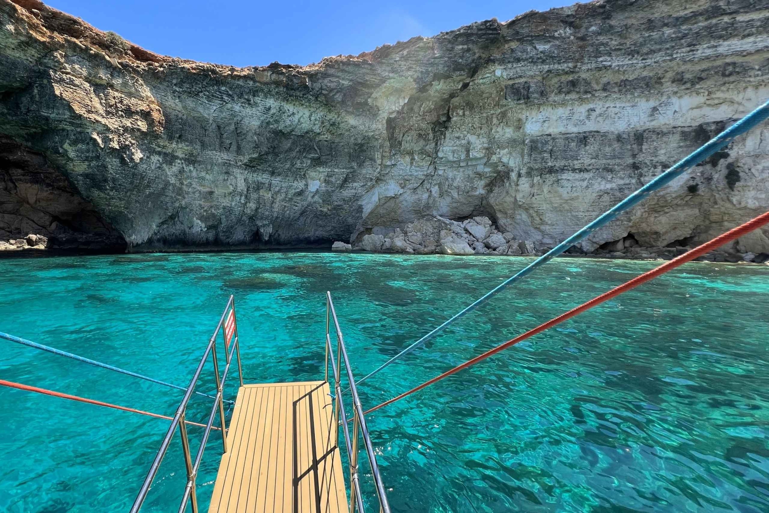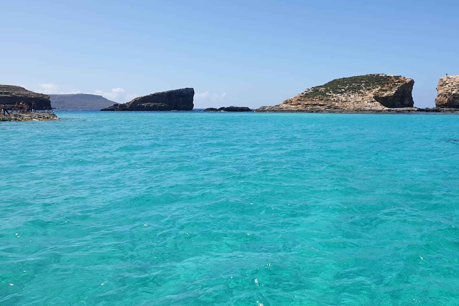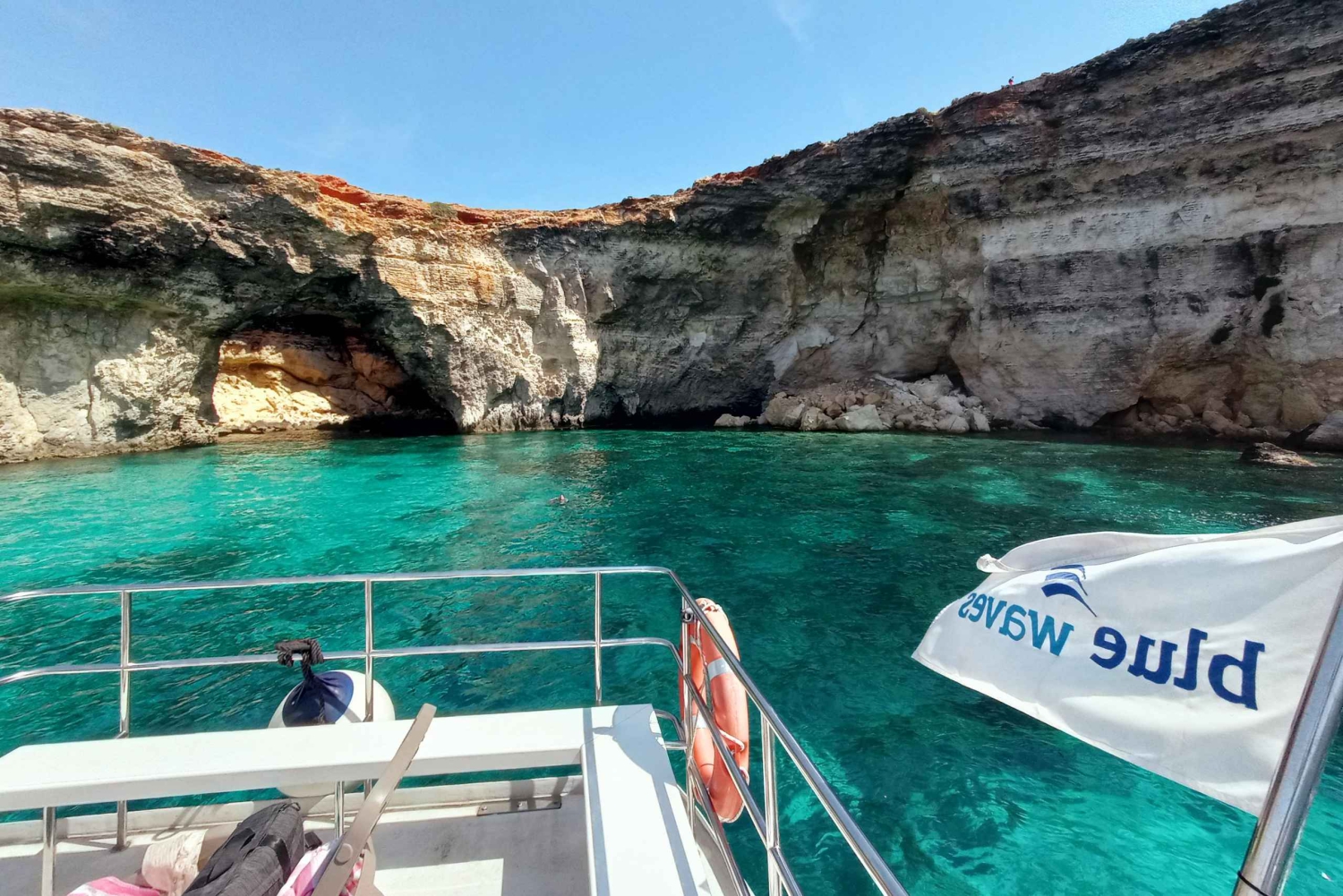 تشمل الرحلة البحرية 3 محطات توقف للسباحة والغطس في كريستال لاغون وبلو لاغون وجبلة تا حلفا (جنوب جوزو)