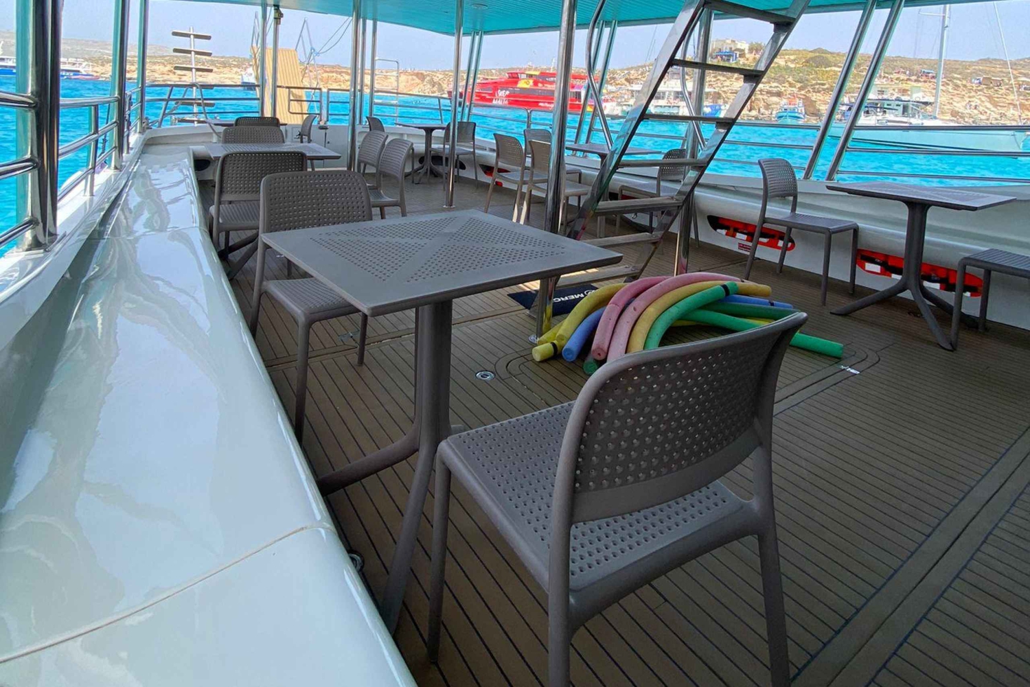 سنبحر إلى رصيف البحيرة الزرقاء الشهير. لديك خيار استكشاف كومينو سيرًا على الأقدام. وإلا يمكنك البقاء على متن السفينة أثناء تثبيت السفينة والاستمتاع بالسباحة والغطس لمدة ساعتين.
