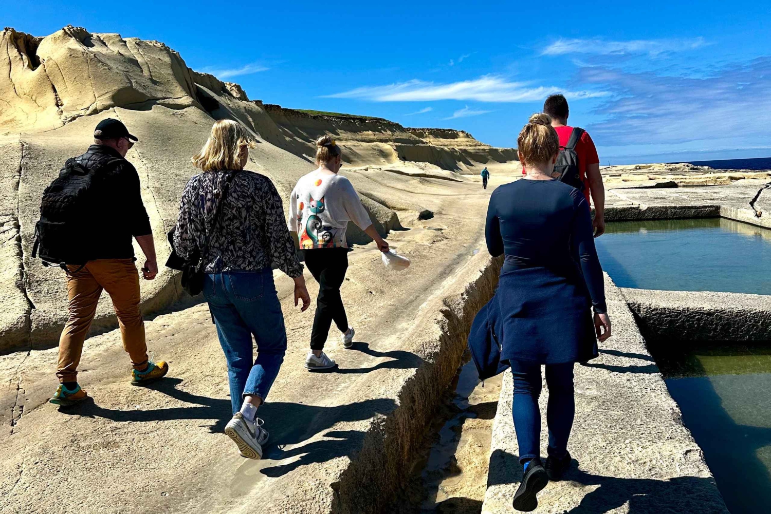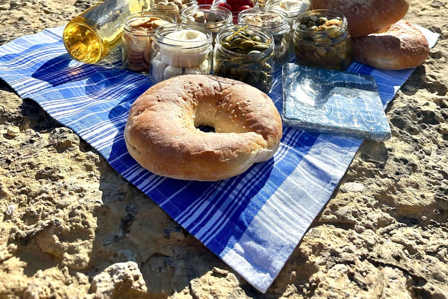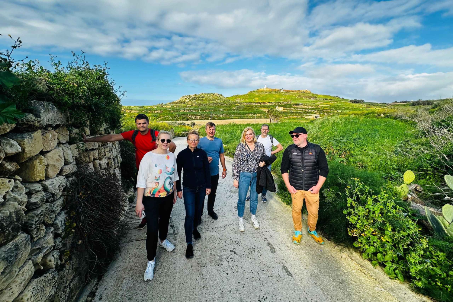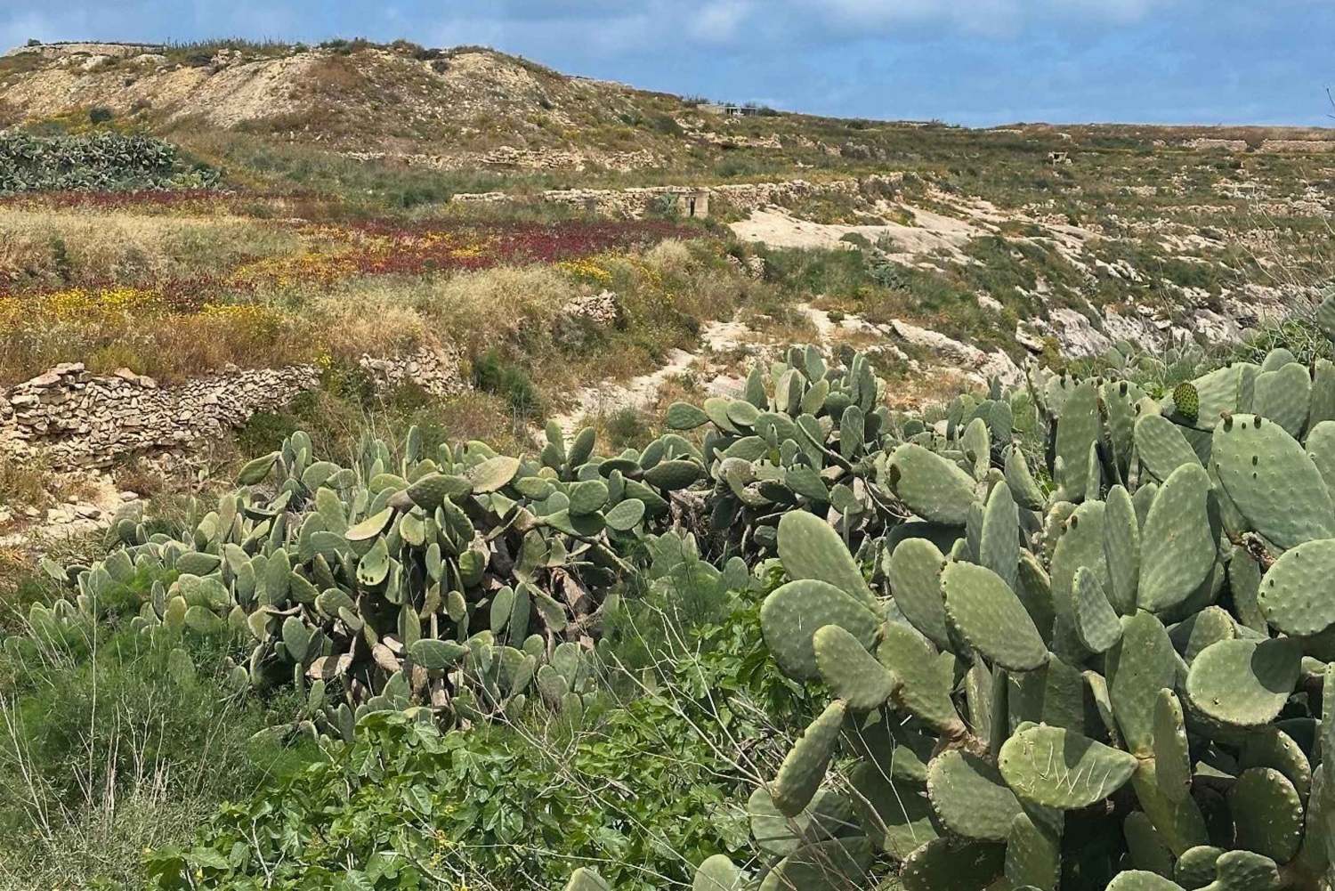 سيقود مرشدك المحلي الودود الطريق، وسيشارك قصصًا رائعة عن تاريخ غوزو والحياة البرية والثقافة، مما يجعل كل خطوة من جولتك مشيًا طويلة لا تُنسى. في منتصف جولة المشي الطويلة، استرخِ واستمتع بوليمة نزهة مع الأطباق الشهية المحلية، بما في ذلك الخبز الطازج والجبن والزيتون والحلويات التقليدية، وكلها في مكان هادئ مع إطلالات بانورامية على البحر الأبيض المتوسط المتلألئ.