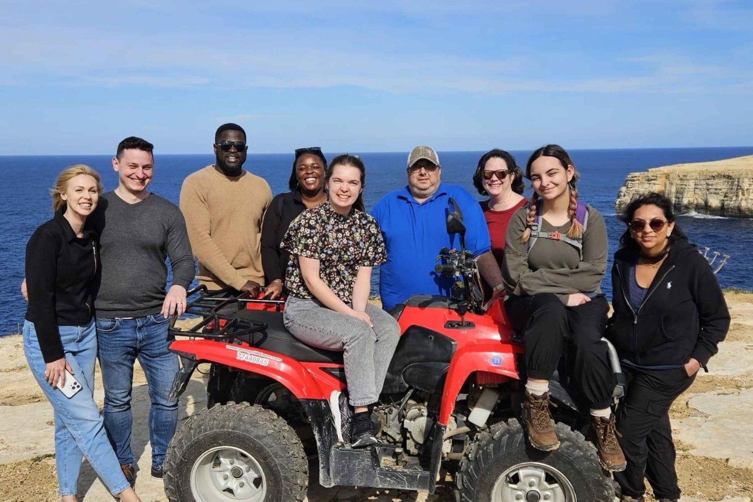 Visita Comino y luego emprende una excursión en quad al atardecer por la hermosa isla de Gozo, explorando la costa con un guía experto que te mostrará lo mejor de la isla durante la hora dorada.