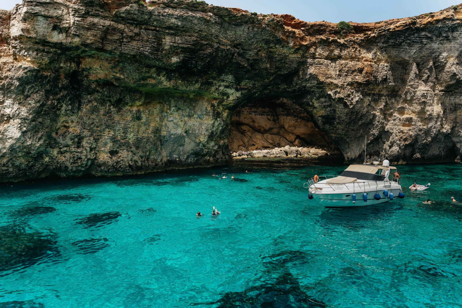 On the return to Bugibba, we visit the Crystal Lagoon, a sheltered bay surrounded by high cliffs and crystal-clear water. While we don’t stop here for swimming, the boat will slowly cruise through the lagoon and nearby caves, giving you time to take incredible photos and enjoy the scenery.
