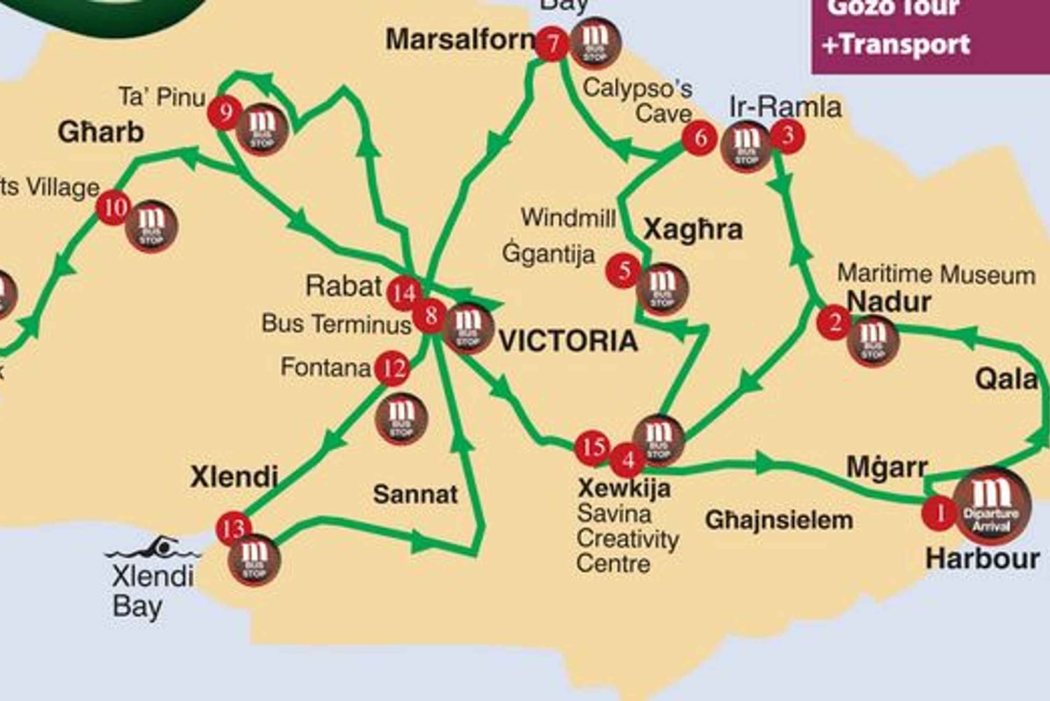 Take advantage of a 1-day ticket to Gozo’s only hop-on and hop-off sightseeing bus and explore the island at leisure. Audio commentary is available on board the open-top bus in 16 languages, and drivers are English speaking. You can catch the tour bus from Gozo Channel Ferry at Mgarr Harbour, or catch it from any of the following stops en route.