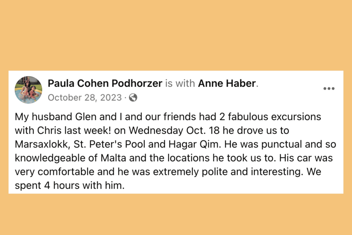 'While I'm not a licensed tour guide, I'm a local private driver who loves sharing cultural insights about Malta as much as I can.'