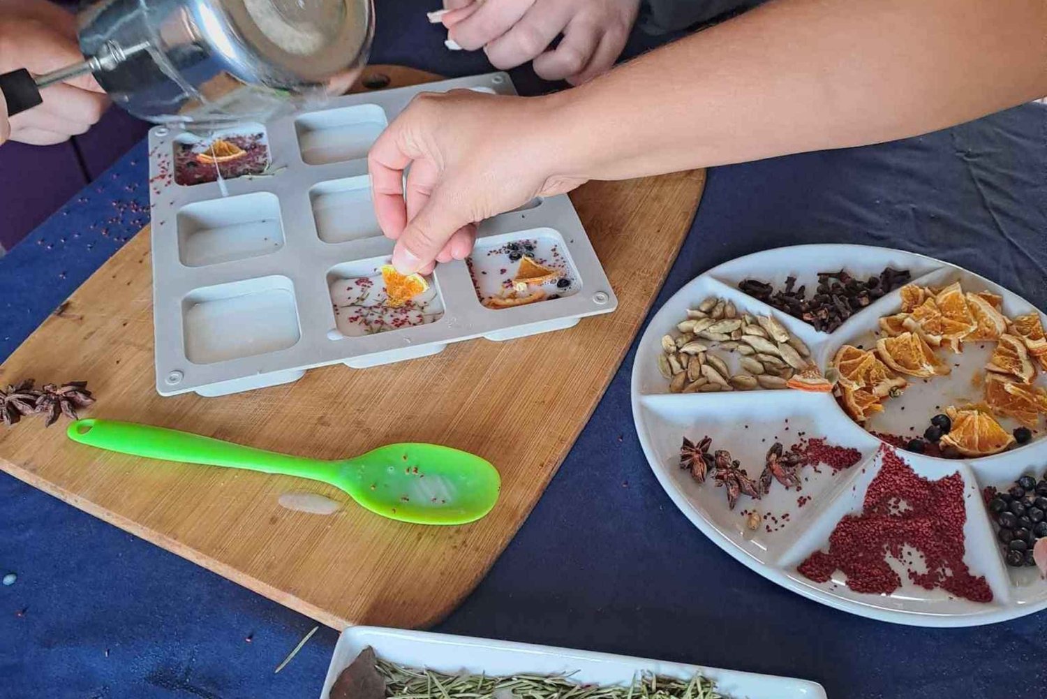 Afterwards, do a hands-on session creating a small soap with the melt-and-pour method. Pour, add fragrance, color, and decorate your soap to take home as a memory of your visit.
