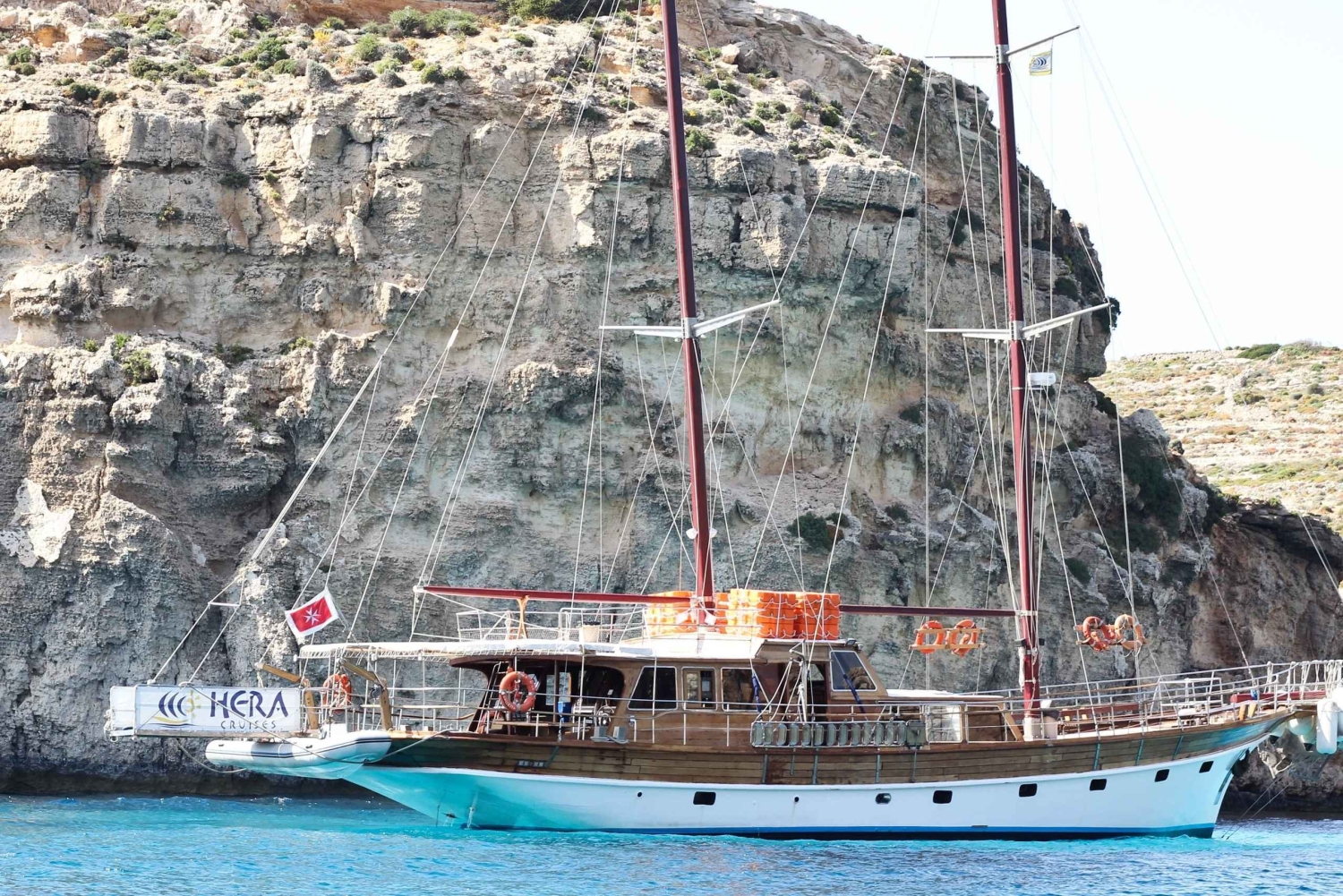 Embark on a full-day journey aboard a gullet boat and take in the breathtaking scenery while sailing along the coast of Malta. Enjoy swim stops at three gorgeous locations and savor a lunch onboard.
