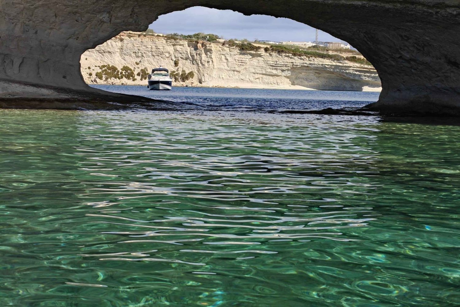 Ensin vierailemme Delimaran linnoituksessa ja sitten Maltan eteläisimmässä majakassa. Vierailemme kolmella perinteisellä suolapannualueella ja kierrämme Kalankan kauniita lahtia, St. Peter's Pool Bay ja Hofra Bay, jossa pääset näkemään Hofra Window'n ja saat mahdollisuuden ottaa henkeäsalpaavia kuvia. Paluumatkalla Marsaxlokkiin vierailemme 400 vuotta vanhassa St Lucianin linnoituksessa, jossa on yksi Maltan suurimmista vartiotorneista.