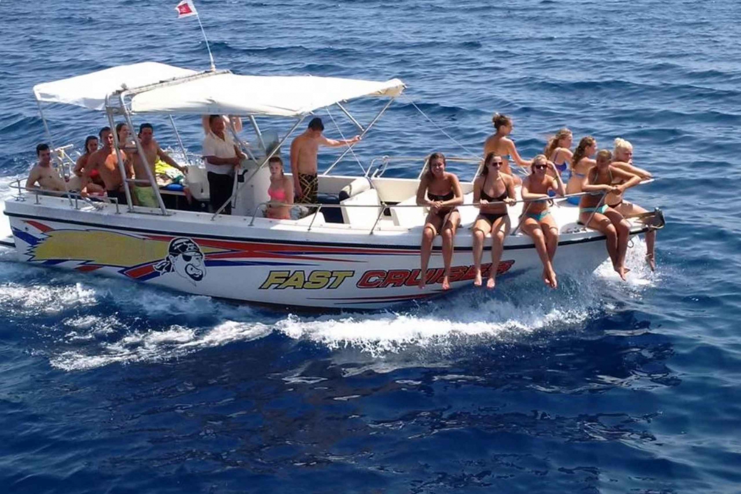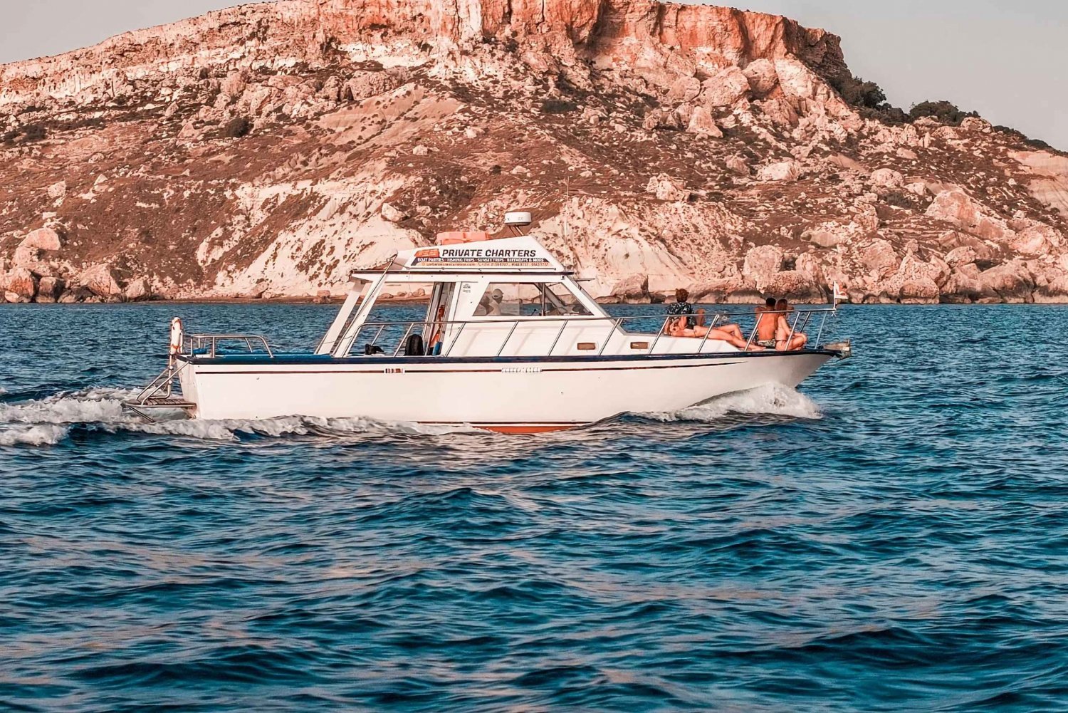Mentre navighi lungo la costa settentrionale mozzafiato, passerai accanto a una serie di punti di riferimento iconici che mostrano la ricca storia e la bellezza naturale della zona, come la storica Saint Mary's Battery, una testimonianza del passato storico della regione; l'impressionante Elephant Head Rock Formation, un'impressionante caratteristica geologica che affascina tutti coloro che la vedono; le bellissime baie di St. Nicholas e St. Mary, che offrono acque tranquille e viste pittoresche, e le incantevoli Grotte Marine di Santa Maria, dove l'arte della natura ha creato formazioni rocciose mozzafiato.