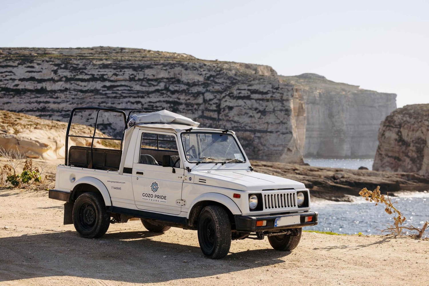 Boek een volledig aanpasbare privétour met jeep voor exclusief gebruik door jou en je groep. Plan je route met je gids, bezoek de beste bezienswaardigheden van Gozo en geniet van een lichte traditionele 3-gangenlunch.
