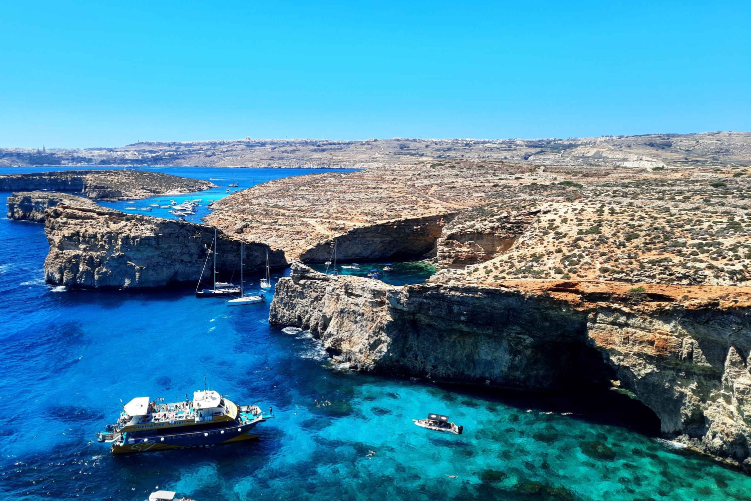 De Blue Lagoon op Comino staat bekend om zijn kristalheldere turquoise water en verbluffende natuurlijke schoonheid. Deze idyllische plek is perfect om te zwemmen, snorkelen en ontspannen op de witte zandstranden.