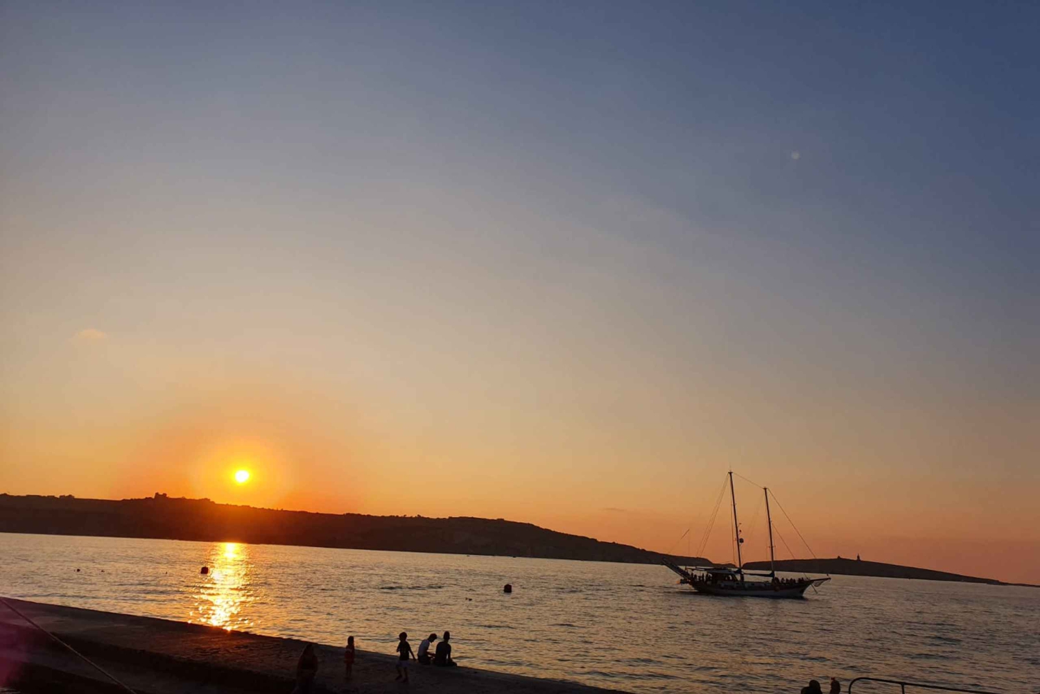 Ta en sjarmerende solnedgangscruise som tar deg til Cominos mest populære strand, Blue Lagoon. Avreise fra Bugibba-bryggen tidlig på kvelden og cruise forbi St. Pauls øy.