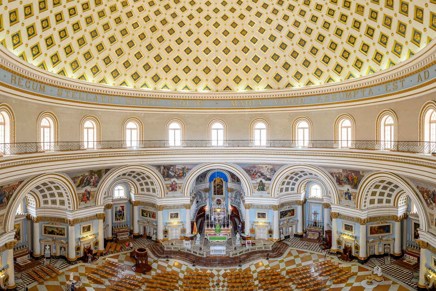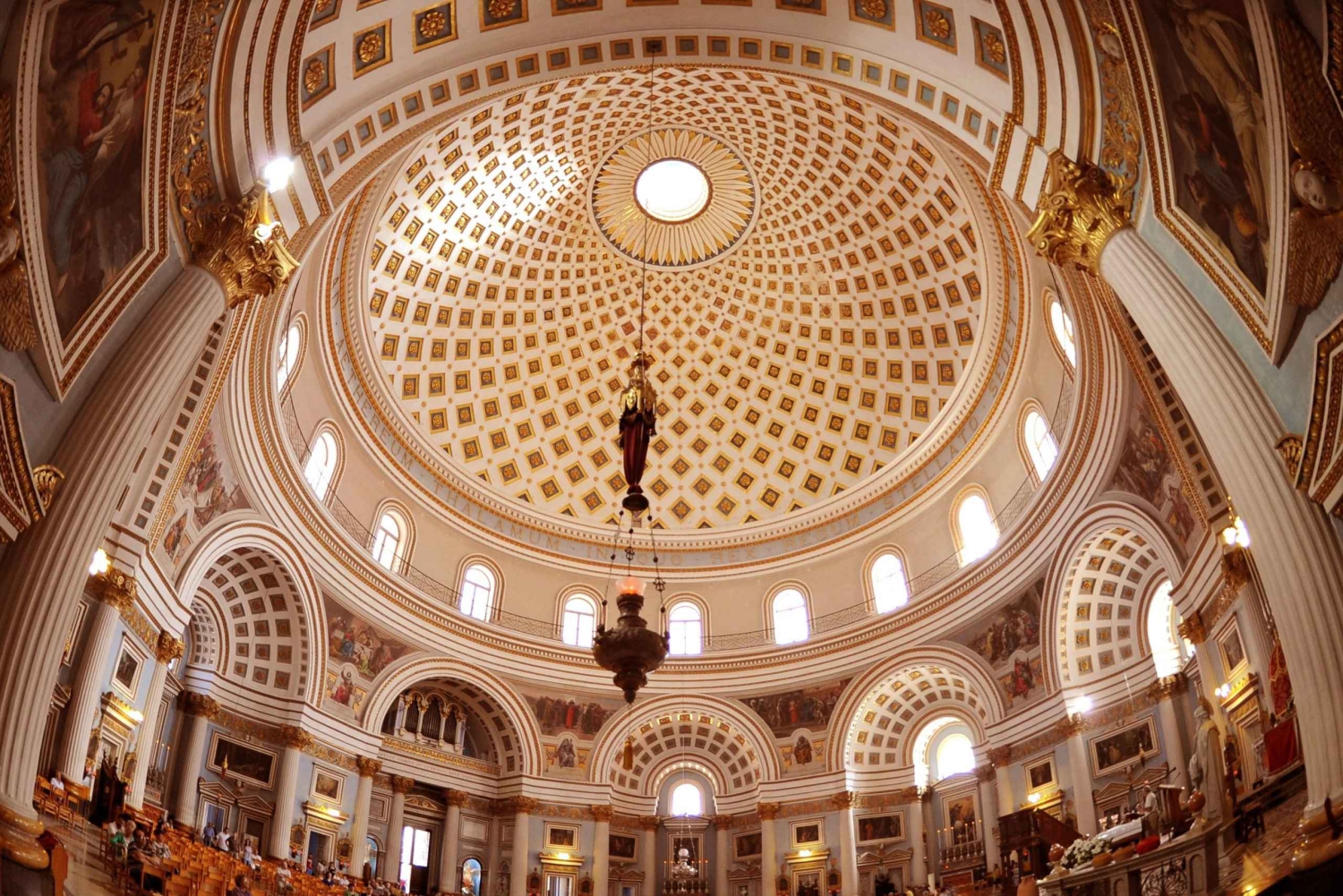 Вы начнете свой тур с посещения Святилища-Базилики Успения Богоматери, часто называемого Куполом Мосты или Ротондой Мосты, римско-католической приходской церкви и малой базилики, расположенной в центре деревни. Нынешняя церковь, построенная между 1833 и 1860 годами по неоклассическому проекту и созданная по образцу Пантеона в Риме, является крупнейшей церковью Мальты и известна тем, что имеет третий по величине неподдерживаемый купол в мире!