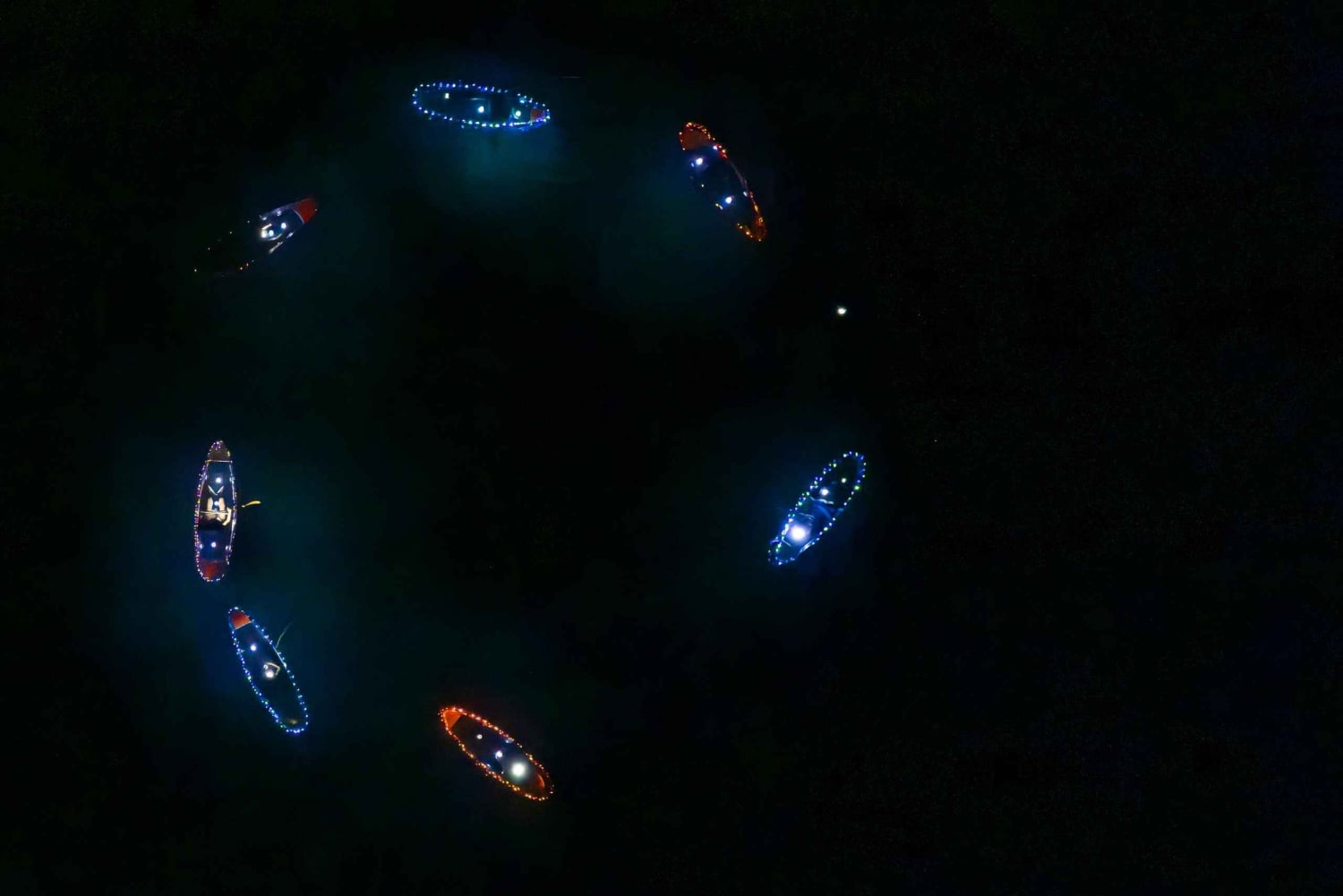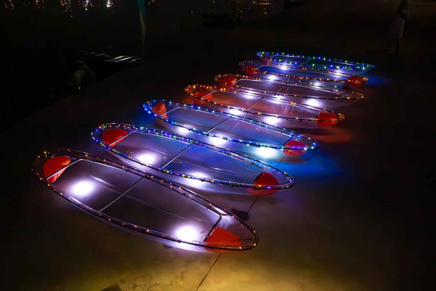 - Glid över vattnet i en transparent kajak upplyst av LED-lampor.