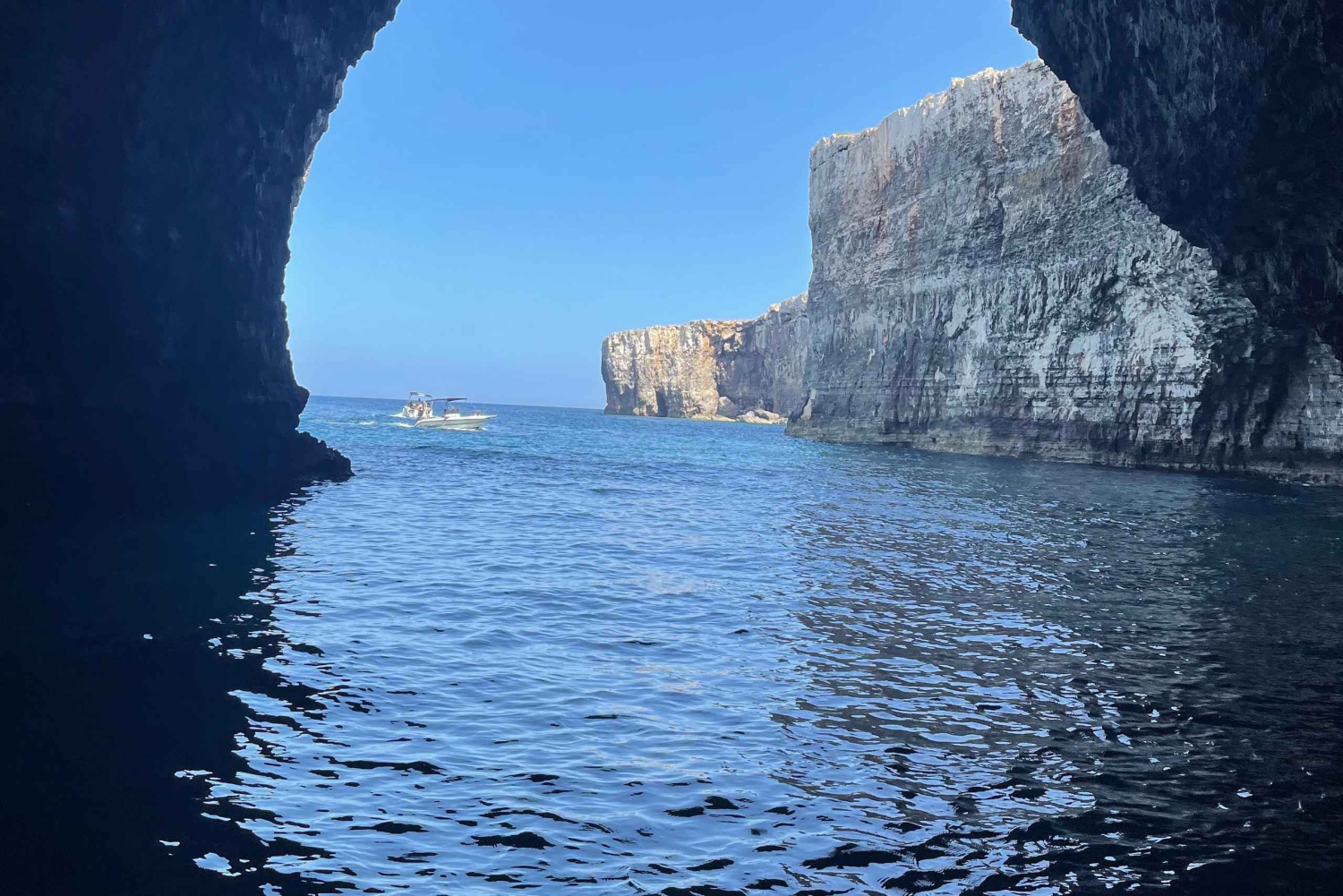 - Havsgrottor: Utforska dolda grottor längs Cominos karga kustlinje.