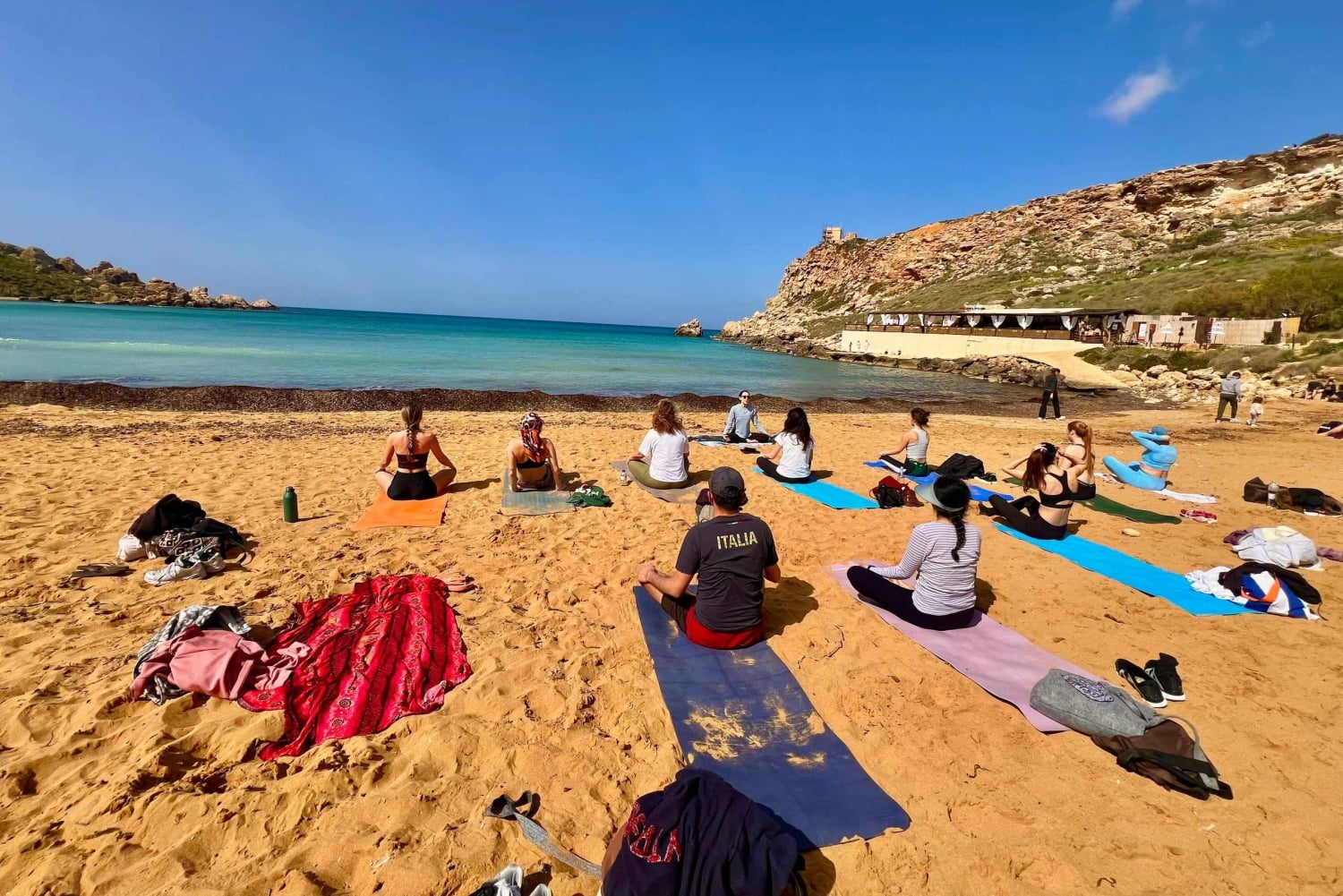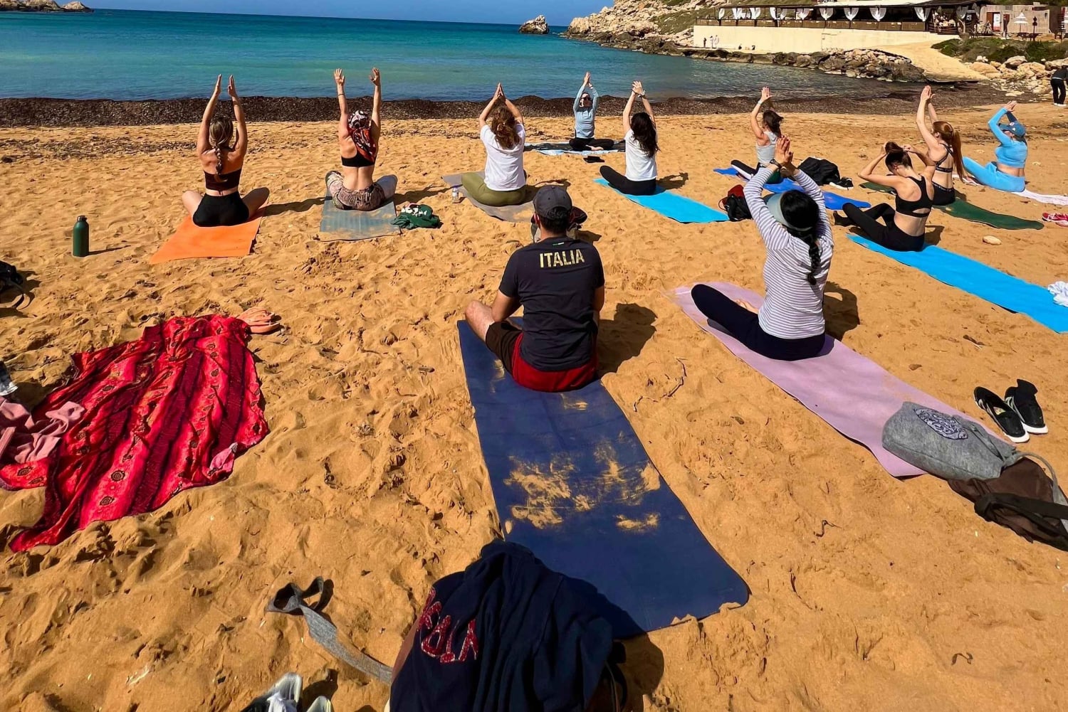 Söndag på stranden Ghajn Tuffieha (Rivieran) Strand Yoga Klass